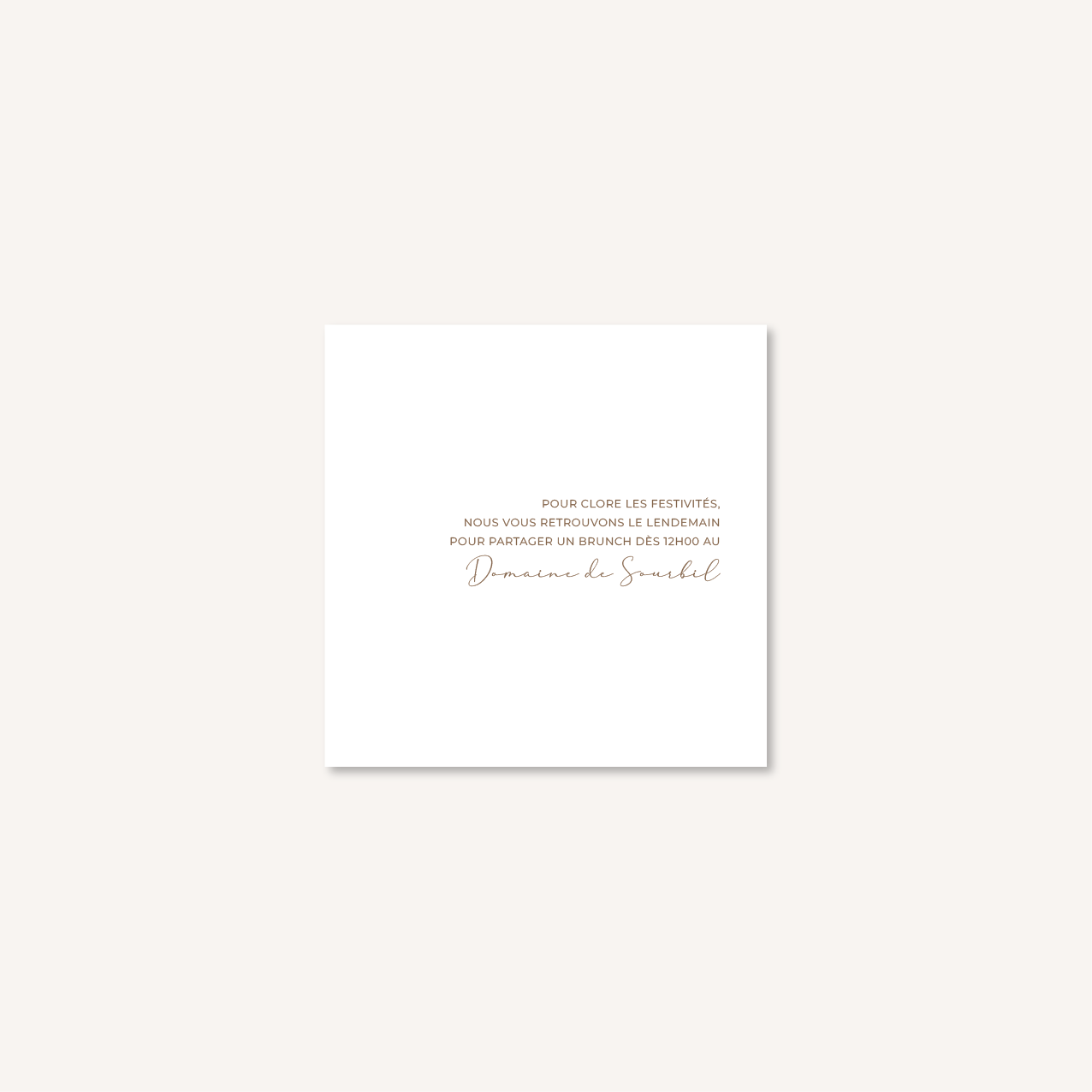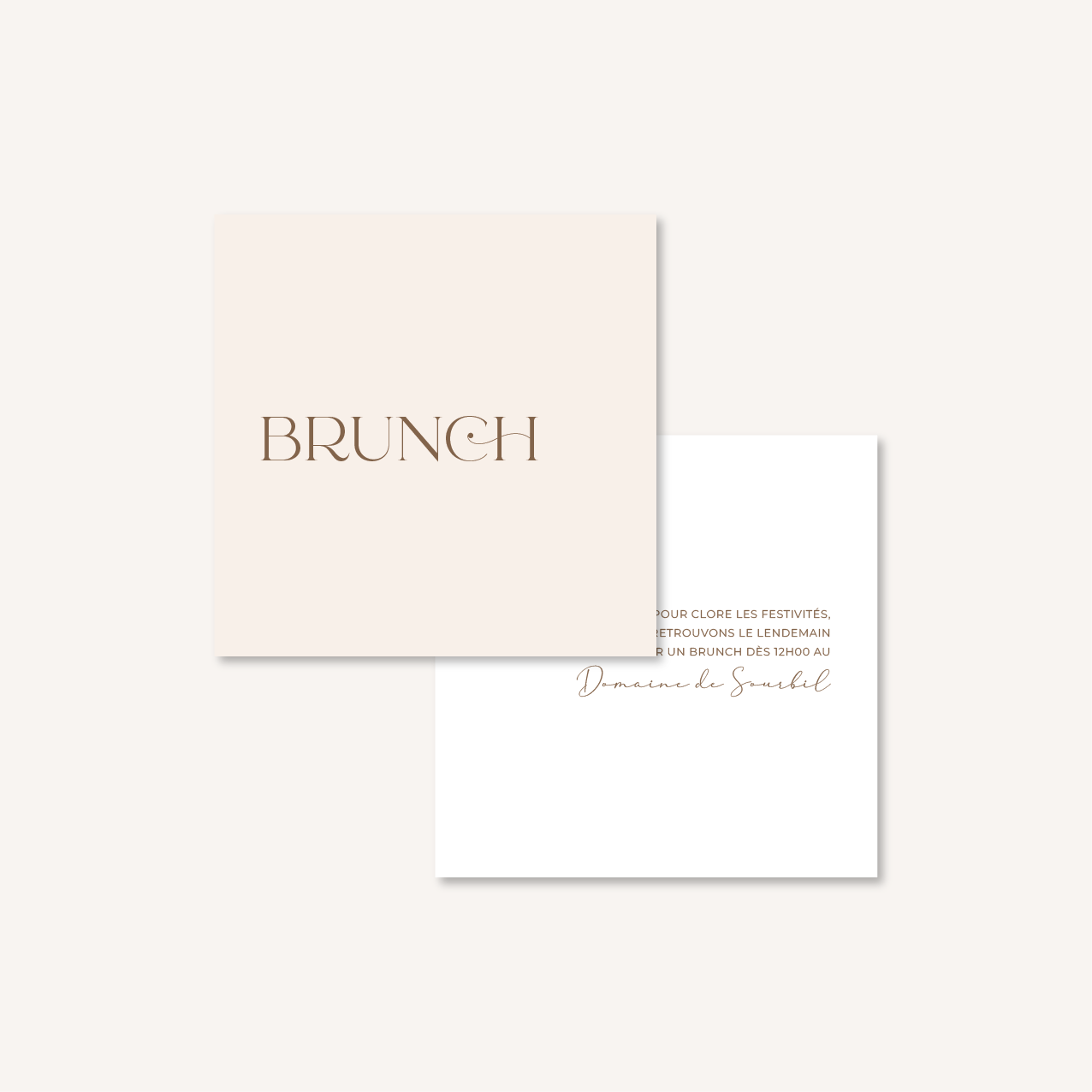 Le carton brunch complète le faire-part de mariage, avec le carton dîner, RSVP, l’étiquette ou le bandeau papier, déclinés sur le même thème afin de constituer une belle invitation pour votre mariage.
