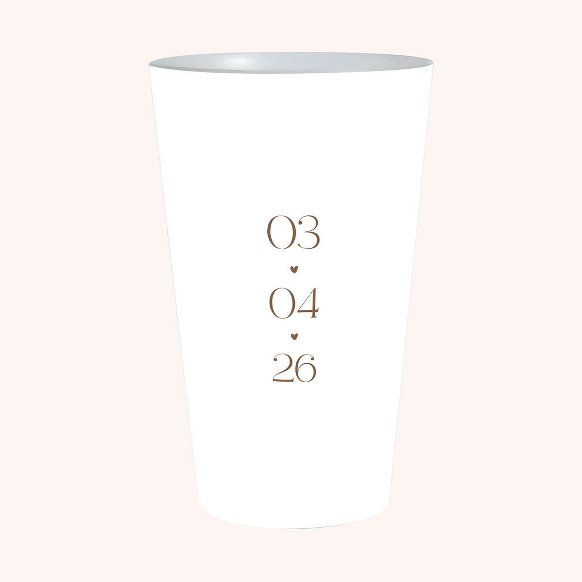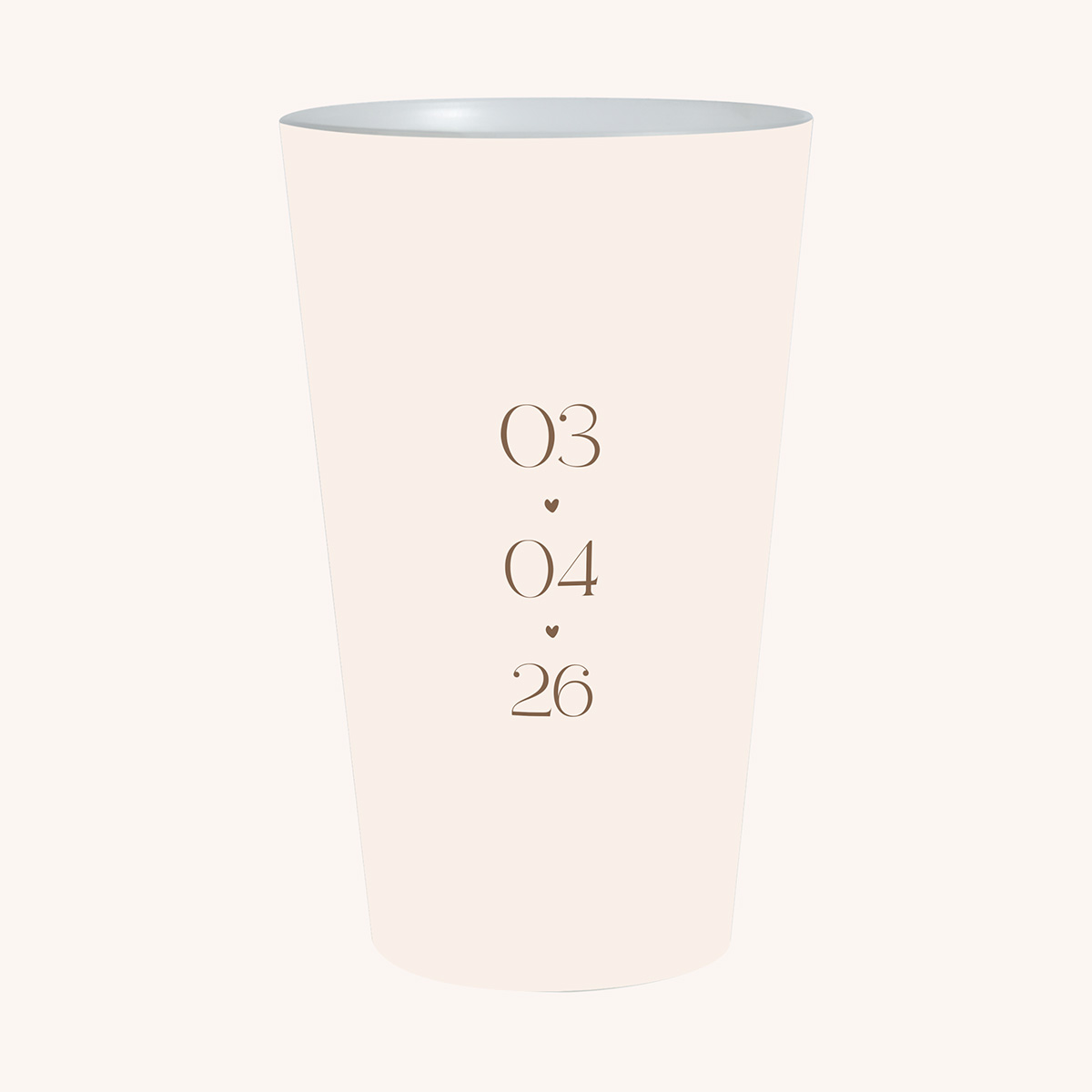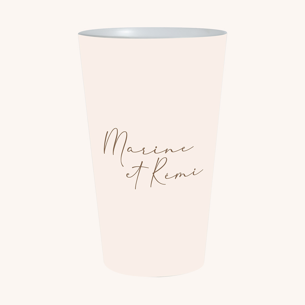 Tendance et écologique, ce gobelet réutilisable personnalisé de la collection RAFFINÉ permettra à vos invités durant toute la durée du mariage de boire avec leur propre verre. À utiliser dès le vin d’honneur, pendant la soirée et pourquoi pas aussi lors du brunch de retour. Vos invités se souviendront longtemps de votre mariage grâce à vos gobelets de mariage personnalisés.