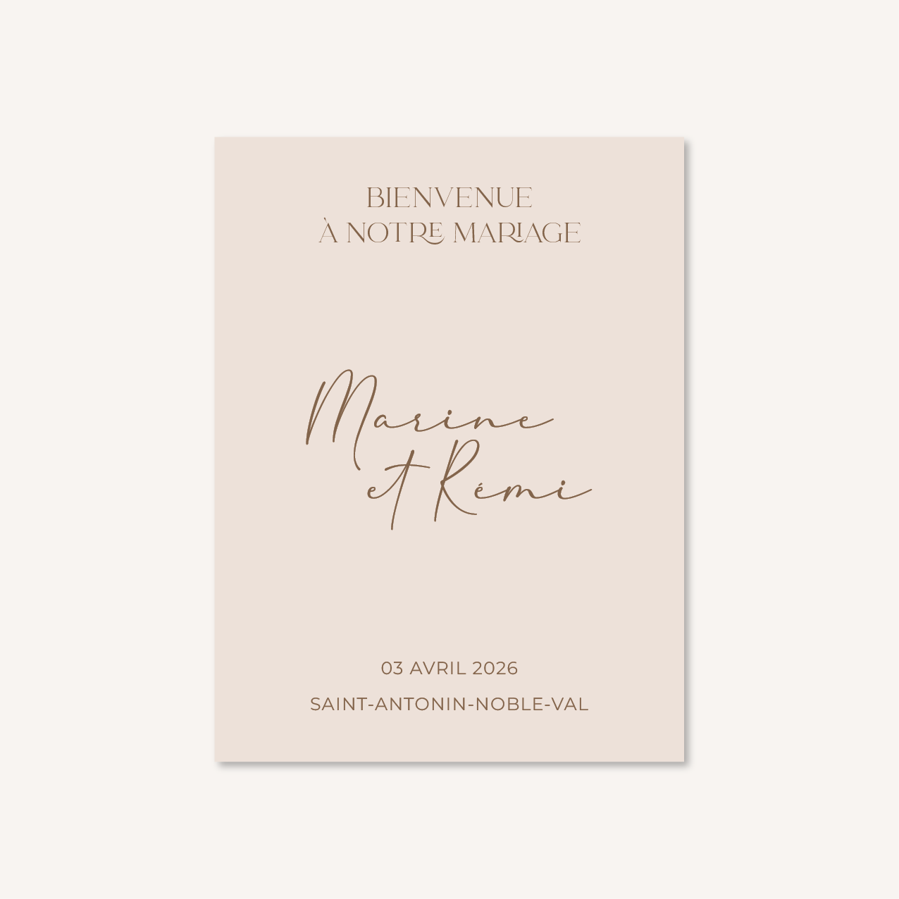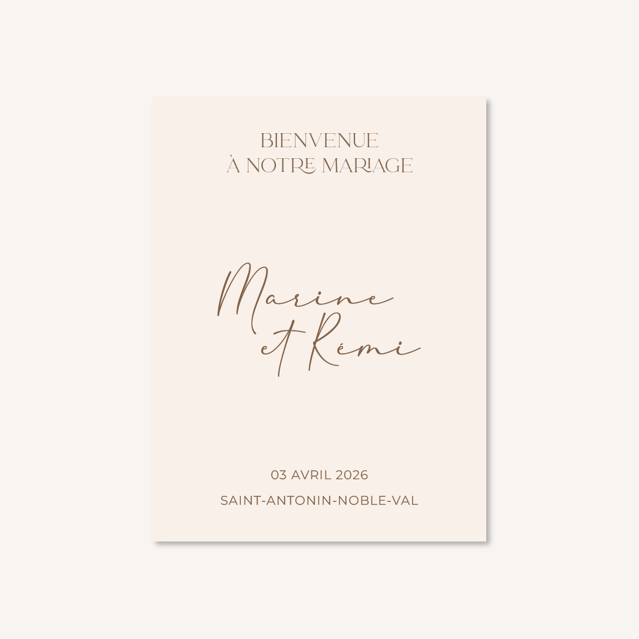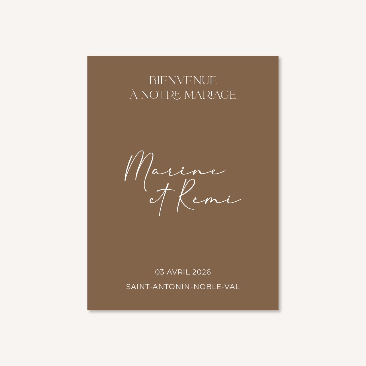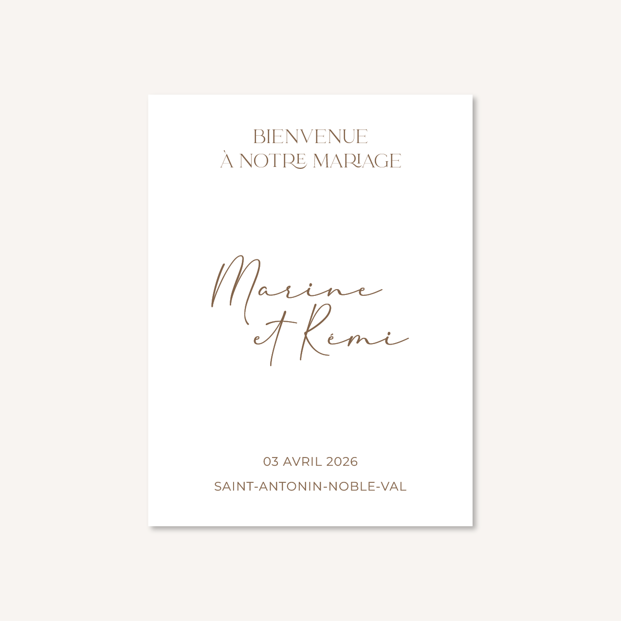 Un beau panneau d’accueil pour accueillir vos invités, placé à l’entrée de votre lieu de cérémonie ou de votre salle de réception, sera le petit plus à la décoration de votre mariage. Choisissez le support idéal en fonction de vos envies ! Une affiche en papier pour l’encadrer ou la coller sur un support rigide, un panneau en PVC expansé, support rigide, fin et léger, pour le poser au sol ou sur un chevalet, ou un panneau transparent en plexiglass, la tendance de l’année, rigide, fin et un peu plus lourd pour toutes autres utilisations.