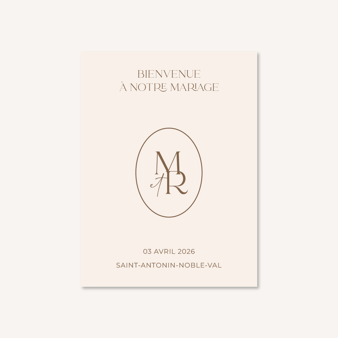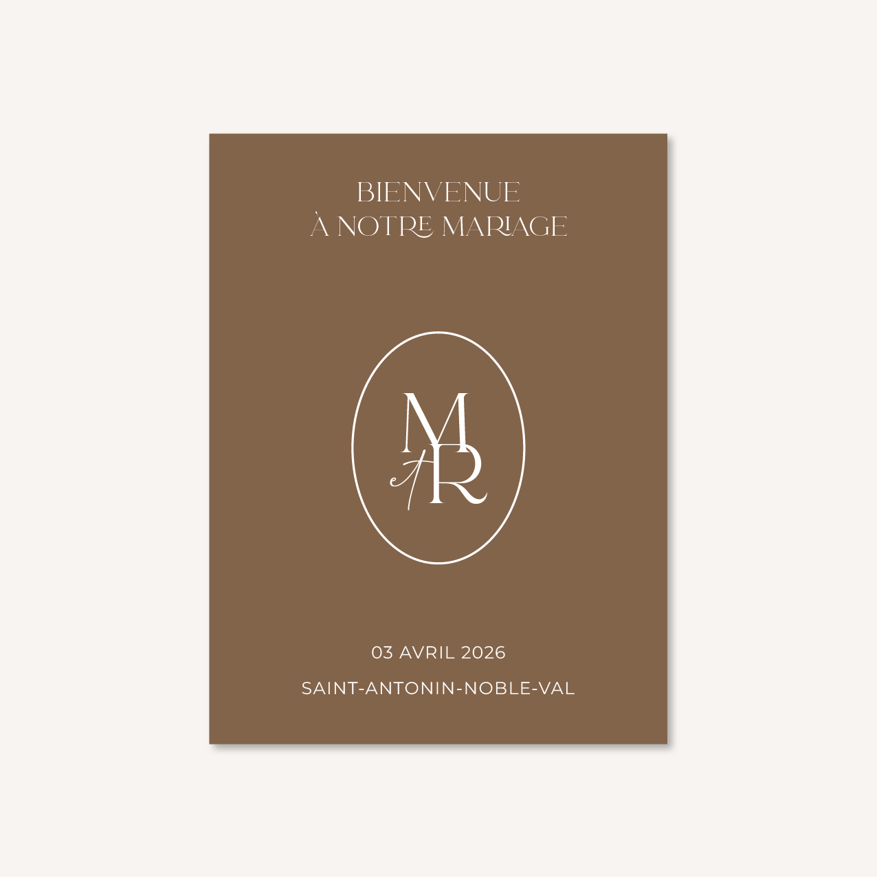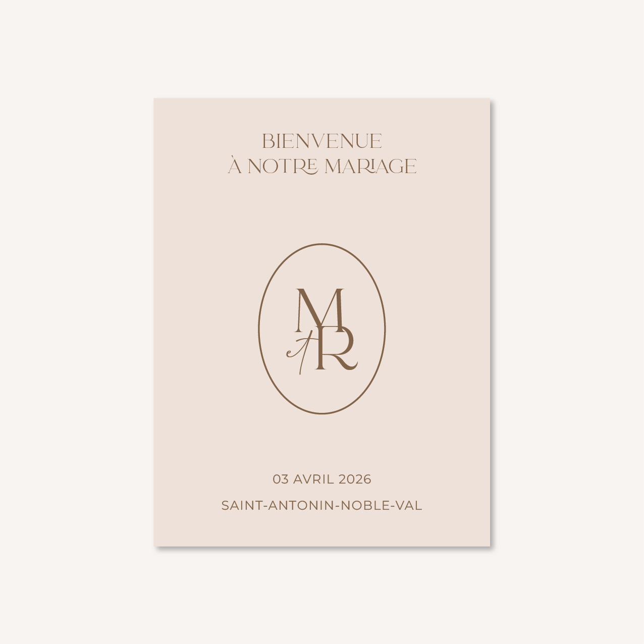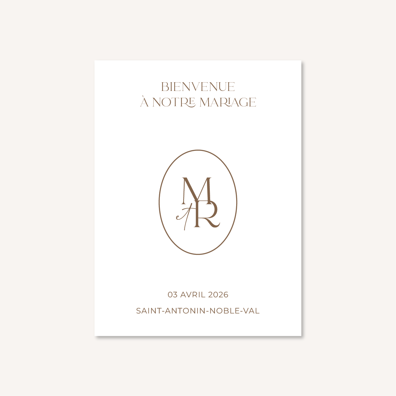 Un beau panneau d’accueil pour accueillir vos invités, placé à l’entrée de votre lieu de cérémonie ou de votre salle de réception, sera le petit plus à la décoration de votre mariage. Choisissez le support idéal en fonction de vos envies ! Une affiche en papier pour l’encadrer ou la coller sur un support rigide, un panneau en PVC expansé, support rigide, fin et léger, pour le poser au sol ou sur un chevalet, ou un panneau transparent en plexiglass, la tendance de l’année, rigide, fin et un peu plus lourd pour toutes autres utilisations.