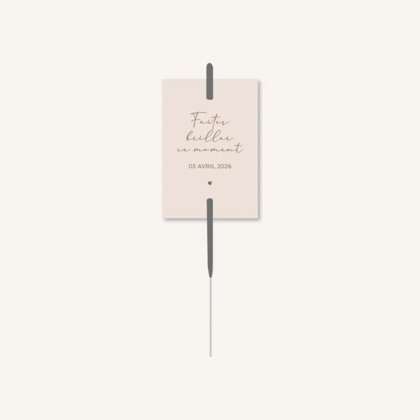 Habillez votre bâton étincelle avec cette étiquette et invitez vos convives à les allumer tous ensemble pour un bel instant d’émotion lors de l’entrée des mariés, de l’ouverture de bal ou bien à l’arrivée de la pièce montée.