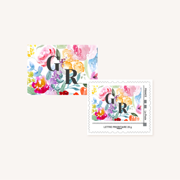 Décorez votre enveloppe de faire-part de mariage avec un timbre assorti à votre collection et aux couleurs de votre mariage. Attention ce produit n’est pas un timbre, il s’agit d’un fichier haute définition à utiliser sur le site de La Poste pour créer autant de timbres que vous souhaitez.