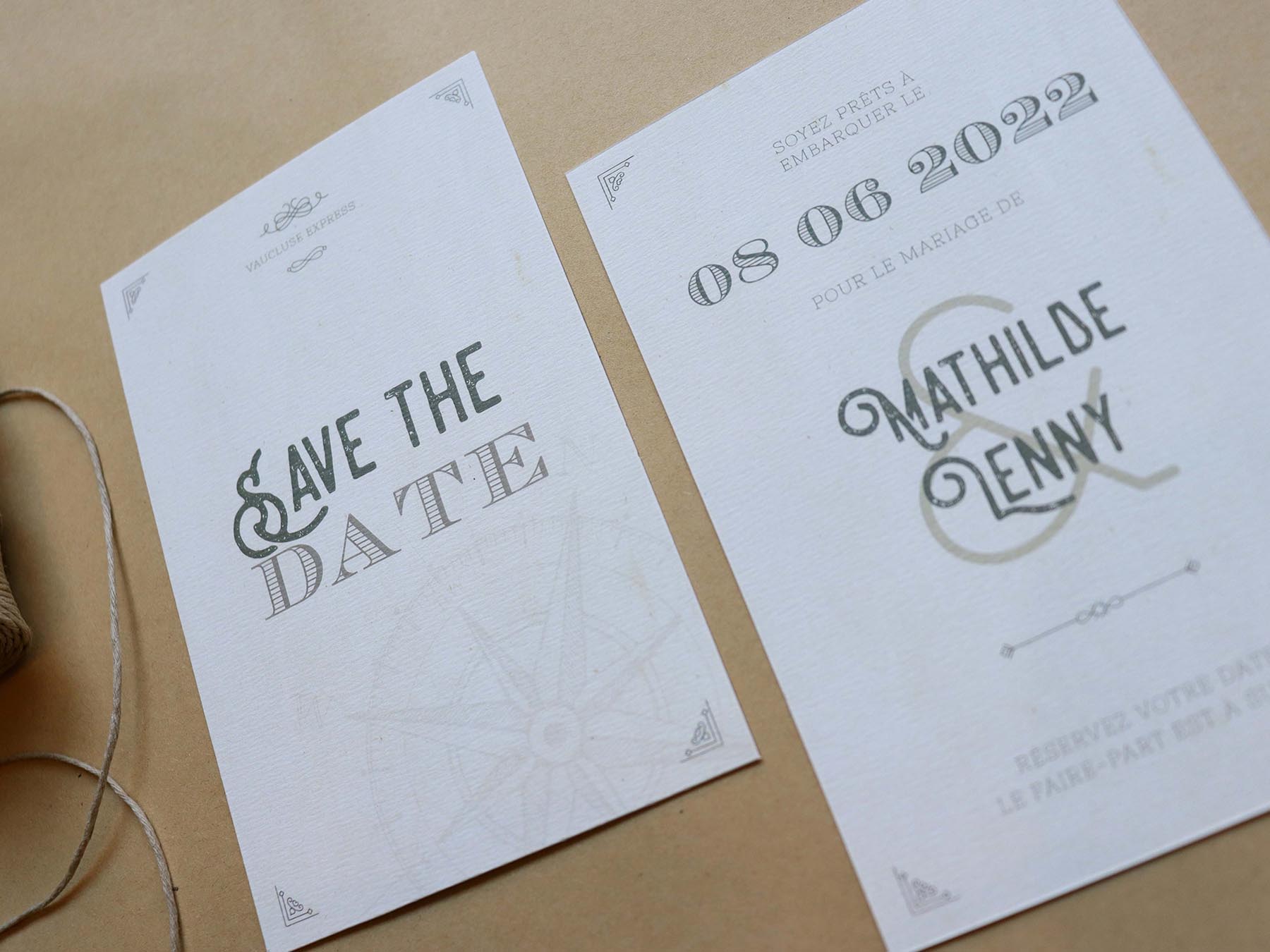 La collection mariage Voyage vintage représente un billet d’avion, dans un style boarding pass rétro. Cette collection est créée avec un papier de créateur et un graphisme effet vieilli.